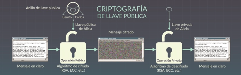Ahora la persona o entidad que encripta un mensaje no puede desencriptarlo si no tiene a su alcance otros datos, y con ello surge el uso de claves públicas y claves privadas, pues para desencriptar un mensaje necesitas tanto de la llave pública como de la privada.