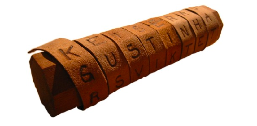 Era utilizada en la antigua Grecia por los espartanos para enviar mensajes ocultos entre las tropas militares. La escitala era un listón de madera en el que se enrollaba una tira de cuero. Sobre esta tira se escribía el mensaje que se quería ocultar en columnas paralelas al eje del palo. Al desenrollar la tira se muestra un texto incoherente (aparentemente) con el texto inicial, pero que puede leerse volviendo a enrollar la tira sobre un palo del mismo diámetro que el primero. Por lo que en este procedimiento se requiere que el emisor y el receptor del mensaje dispongan de un listón del mismo diámetro para poder descifrar el comunicado.